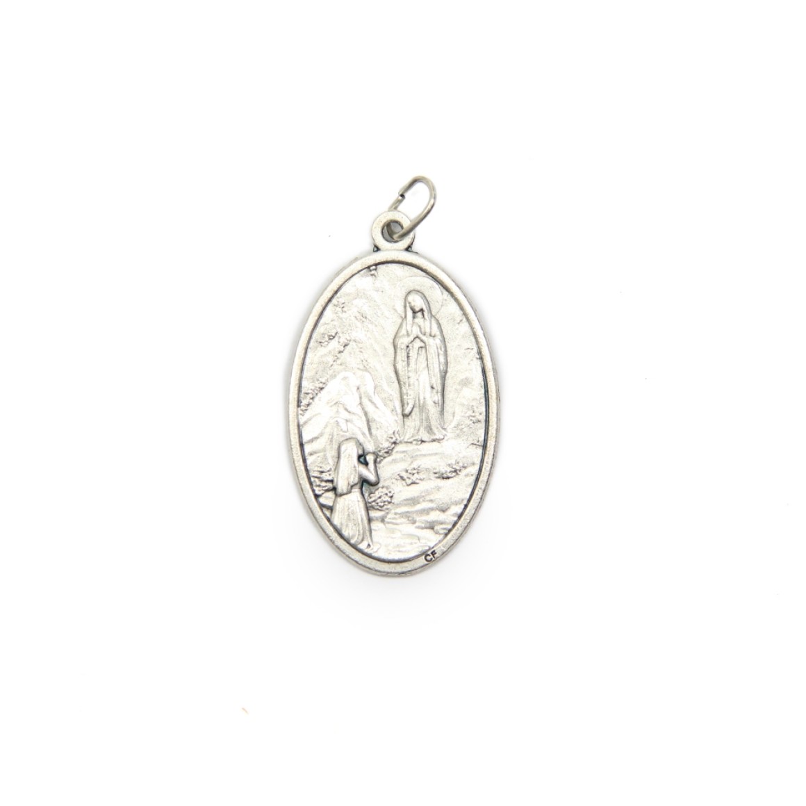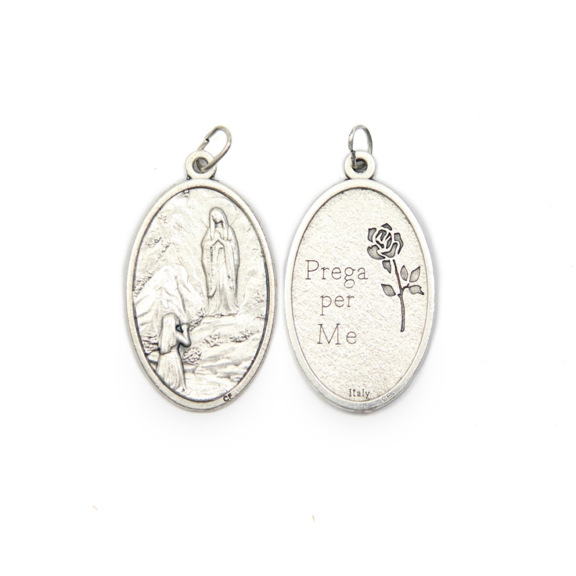 *Medalha N. Sra. De Lourdes Italiana Oval Prateada - 4,5x2,6cm