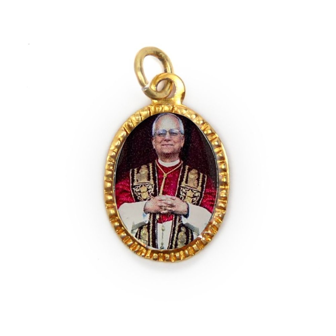 *Medalha de Alumínio Oval Grande Dourada c/ 10un. Papa Leão XIV - 2X1,3cm.
