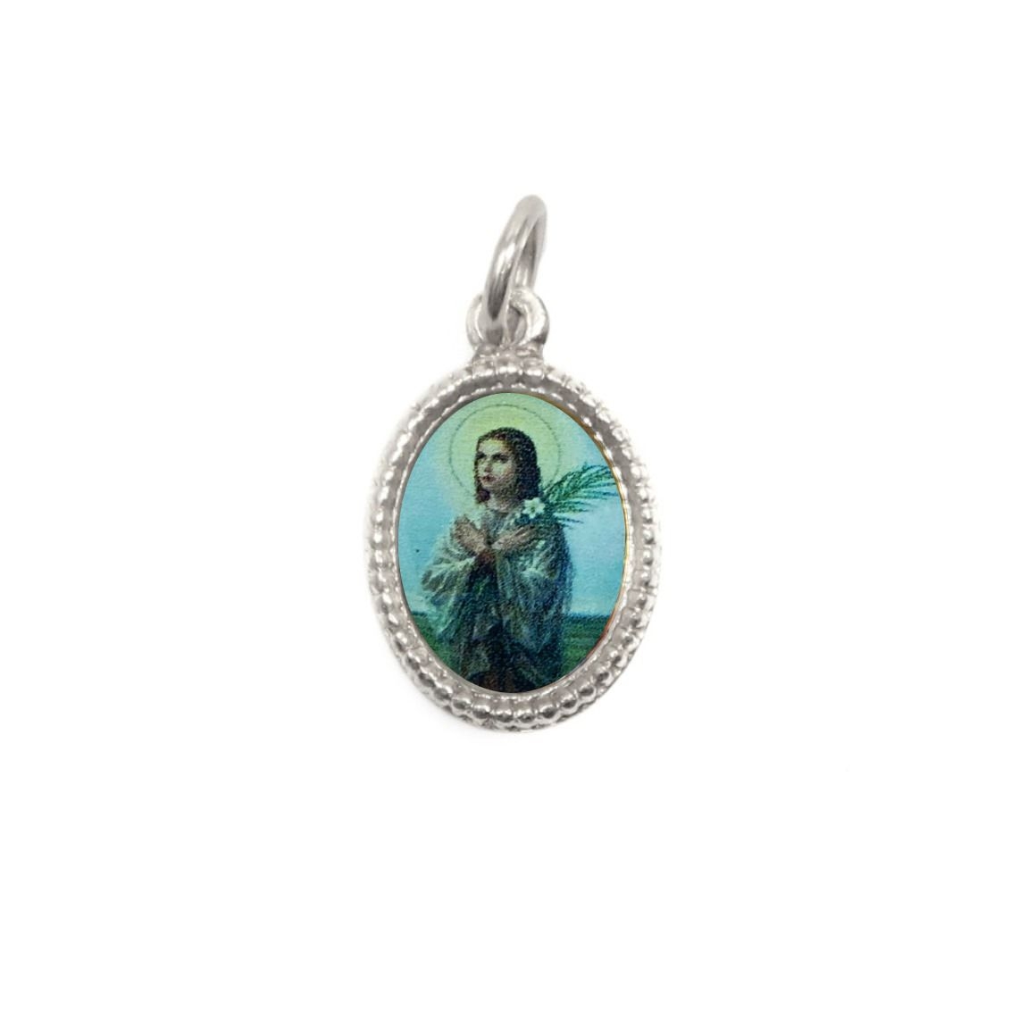 MD102430P20 - Medalha de Alumínio Oval Prata c/ 20un. Santa Maria Goretti - 1,5x1cm