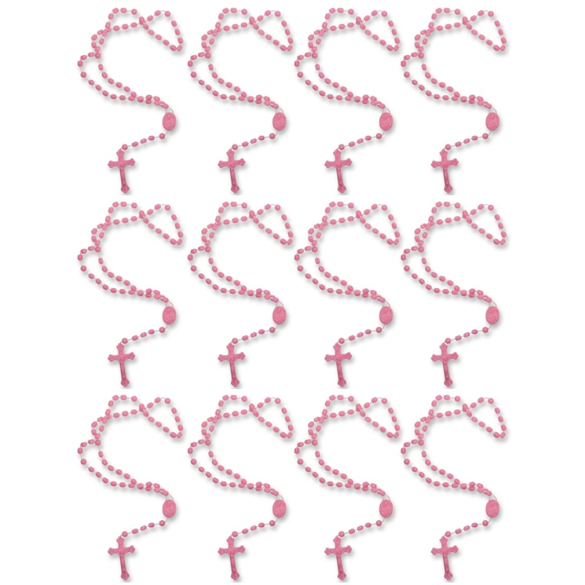 TE050020P12 - Terço Acrílico Rosa c/ 12un. - 32cm