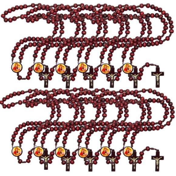 TE940176P12 - Terço N. Sra da Saúde Madeira c/ 12un. - 37cm