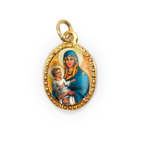 *Medalha de Alumínio Oval Dourada c/ 10un. N. Sra. Da Saúde - 2x1,3cm.
