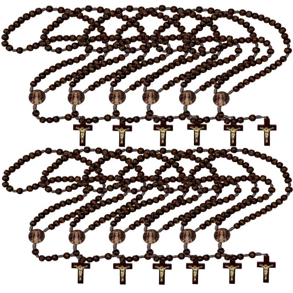 TE940260P12 - Terço Santa Filomena Madeira c/ 12un. - 37cm