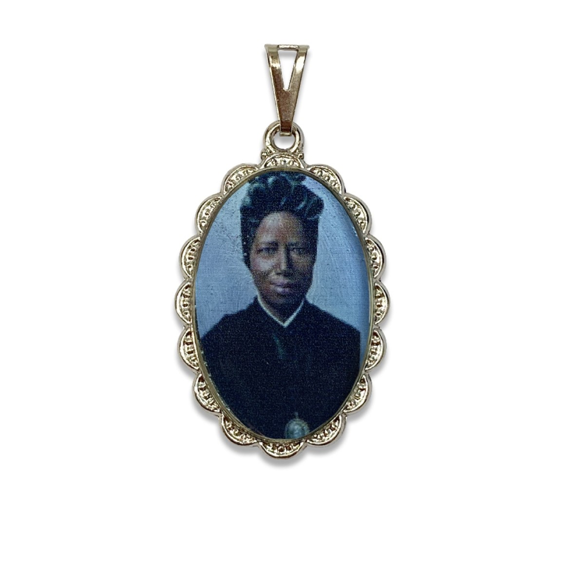 *Medalha Santa Josefina Bakhita Rendada Níquel - 4,2x2,5cm.