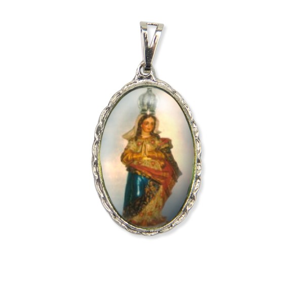 MD128033 - Medalha N. Sra. Do Amparo Rendada Níquel - 5x2,5cm