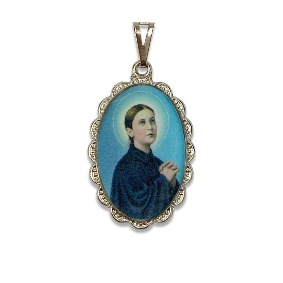 MD128065 - Medalha Santa Gemma Galgani Rendada Níquel - 4,1x2,6cm