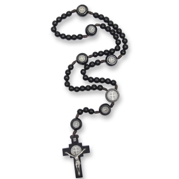 TE930045 - Terço São Bento Madeira Preta - 54cm