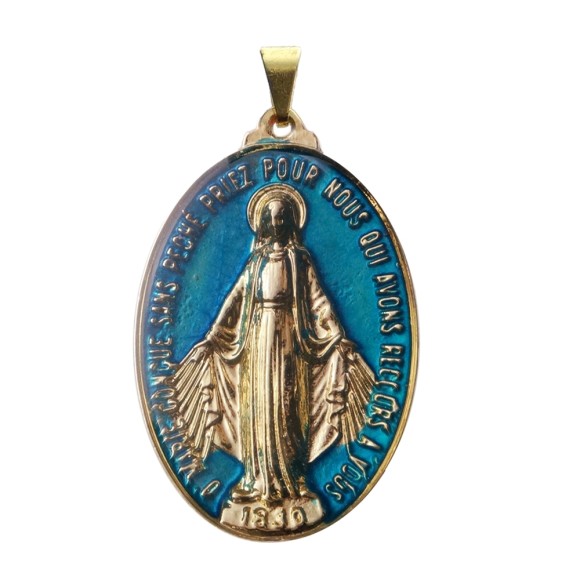 MD520134 - Medalha N. Sra. Das Graças Resinada Azul - 4,5x2,8cm