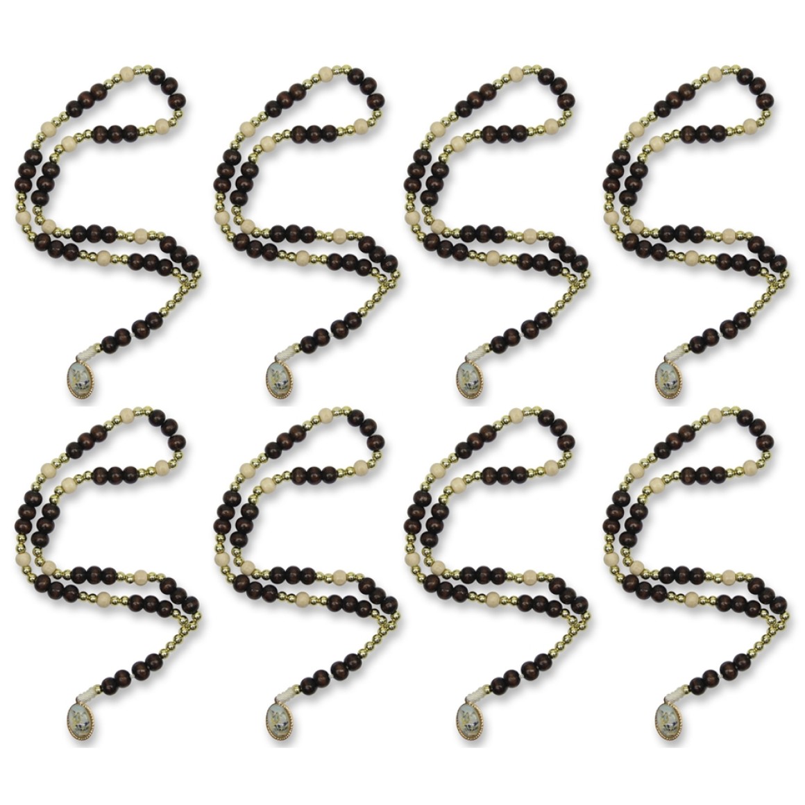 *Terço São Miguel Arcanjo Madeira c/ 12un. - 24cm.