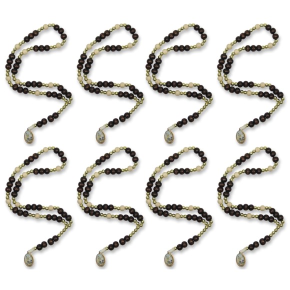 TE330003P12 - Terço São Miguel Arcanjo Madeira c/ 12un. - 24cm