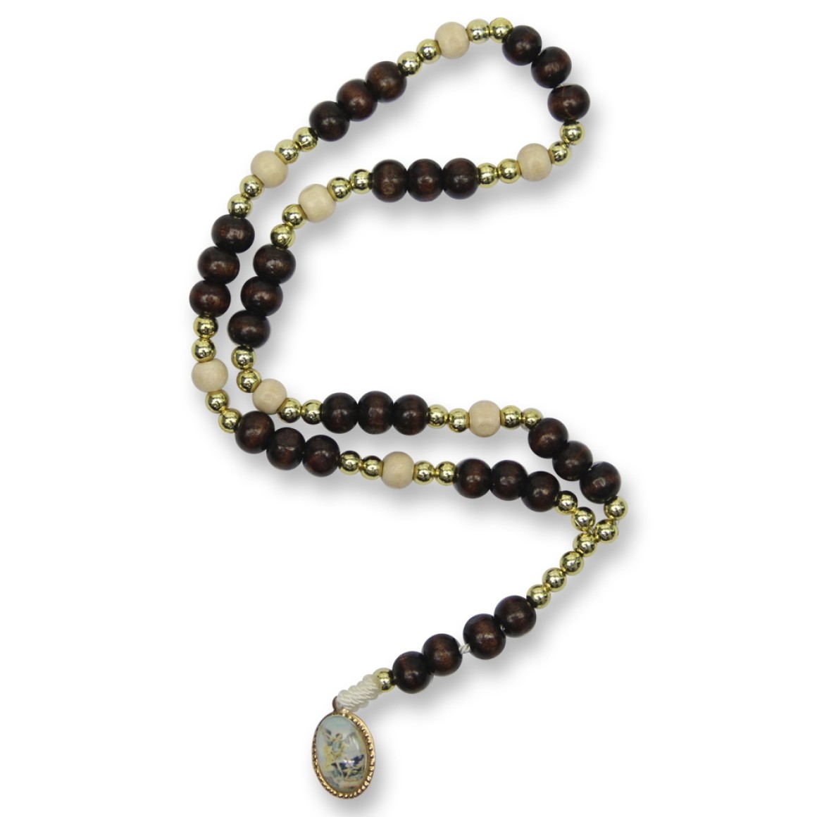 2. TE330003P12 - Terço São Miguel Arcanjo Madeira c/ 12un. - 24cm