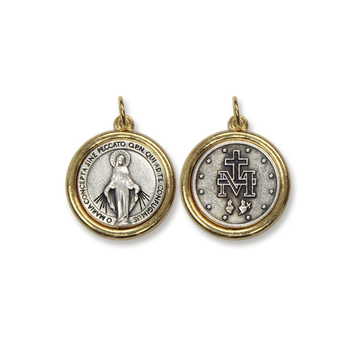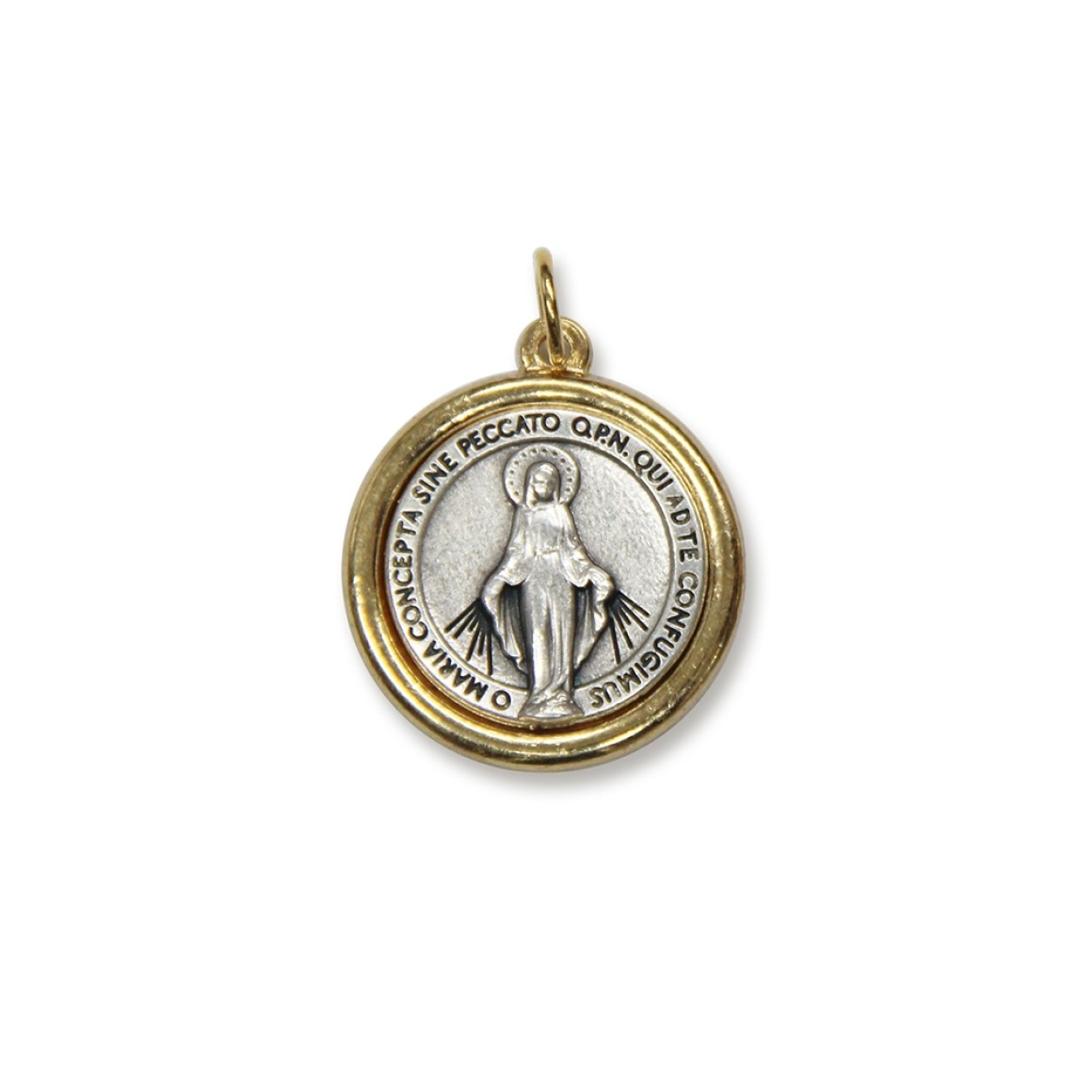 MD1170151 - Medalha N. Sra. Das Graças Italiana Redonda Prateada c/ Dourada - 2,5x2,2cm