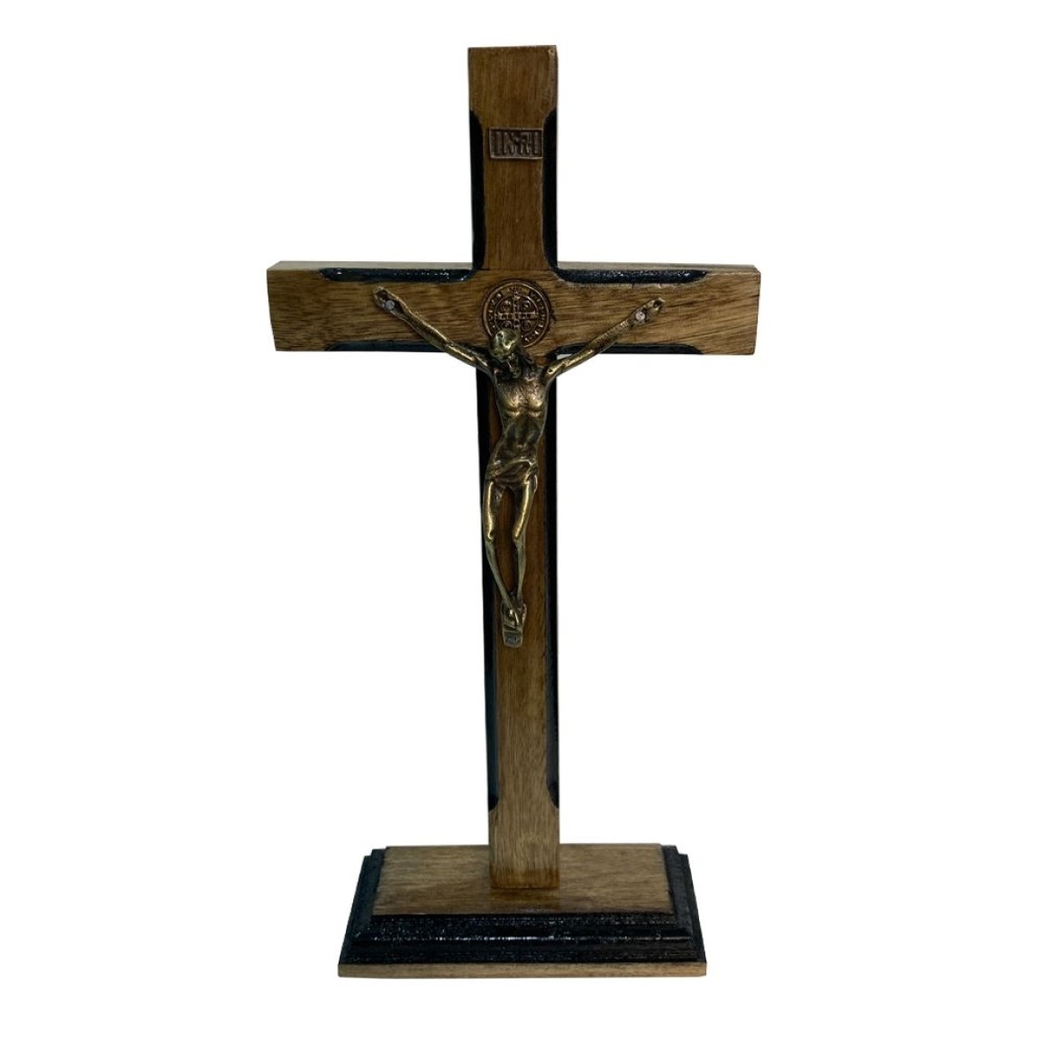 *Crucifixo de Mesa São Bento Madeira - 27x13cm (2154).