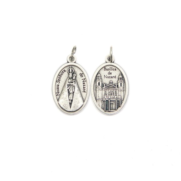 - MD1180006P2 - Medalha N. Sra. De Nazaré e Basílica de Nazaré Italiana Oval Dupla Prateada c/ 2un. - 2,5x1,7cm