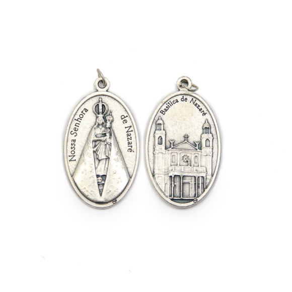 MD1190080 - Medalha N. Sra. De Nazaré Italiana Oval Dupla Prateada - 4,5x2,6cm