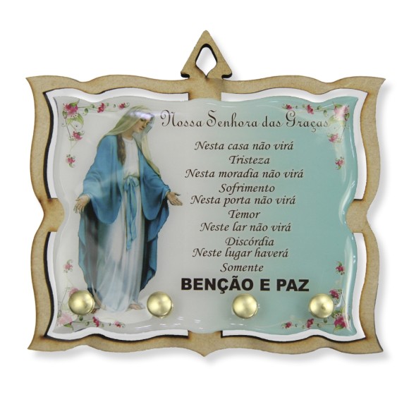 PC380606 - Porta Chaves N. Sra. Das Graças MDF Resinado - 15,5x14cm