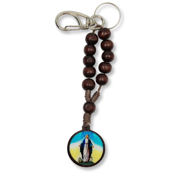 CH7601109 - Chaveiro N. Sra Das Graças Dezena Madeira - 14x2,6cm