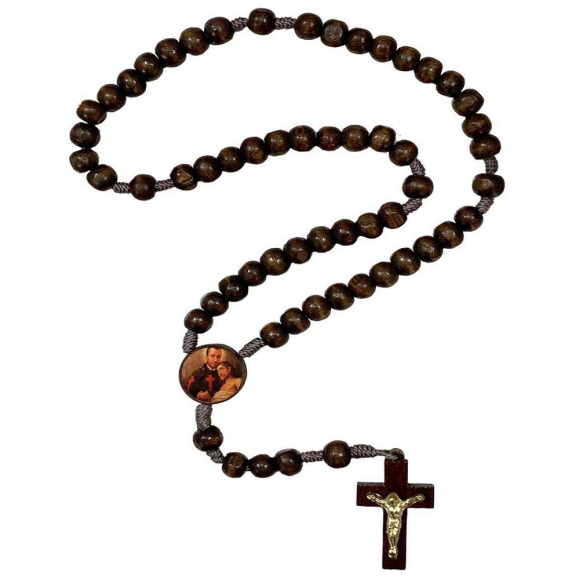 *Terço São Camilo Lellis Madeira - 37cm.