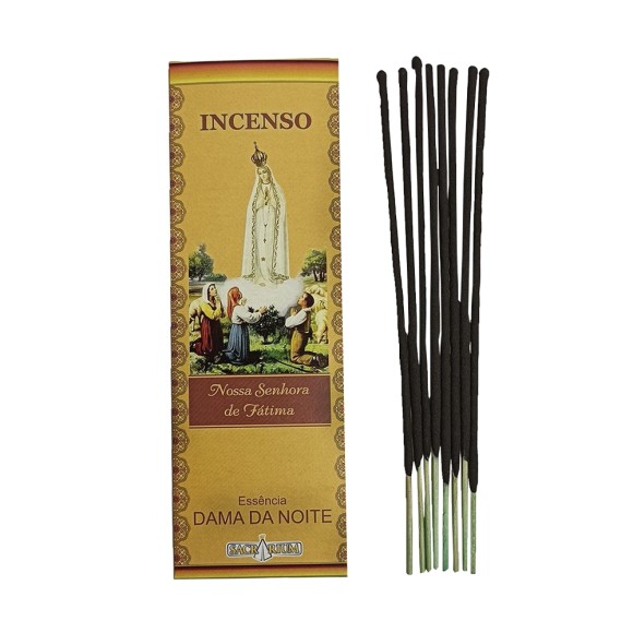 *INCENSO perfumado com aroma de Dama da Noite, N. Sra. de Fátima com Oração no verso, com 8 varetas de longa duração.