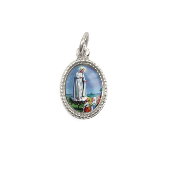 MD102406P20 - Medalha de Alumínio Oval Prata c/ 20un. N. Sra. De Fátima - 1,5x1cm