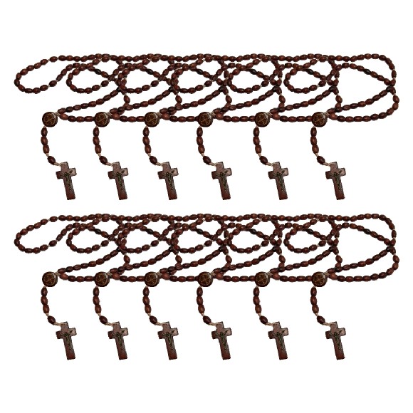 TE930006P12 - Terço São Bento Madeira c/ 12un. - 45cm