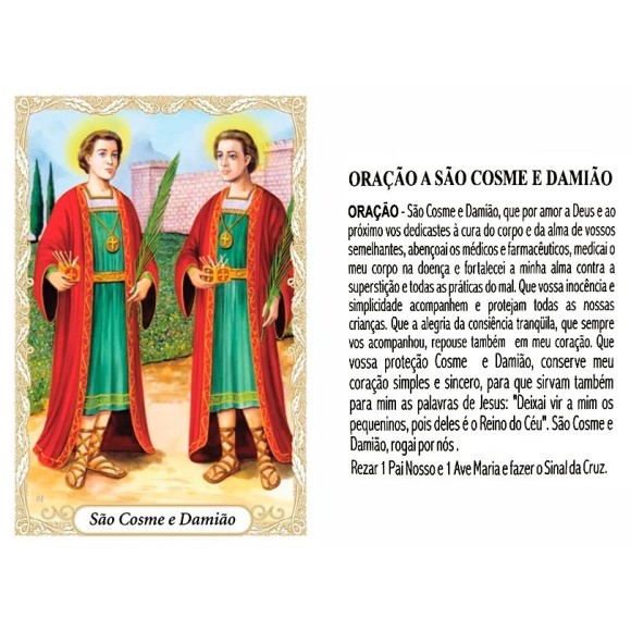 *Oração São Cosme e Damião c/ 100un. - 6x4cm.