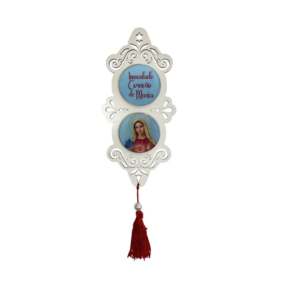 *Adorno Imaculado Coração de Maria MDF Branco Resinado-32x10,2cm.