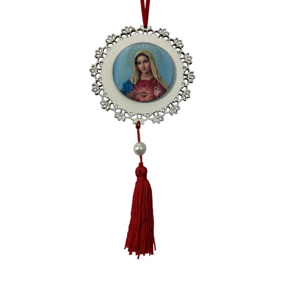 *Adorno Imaculado Coração de Maria MDF Branco Resinado - 22x9,7cm.