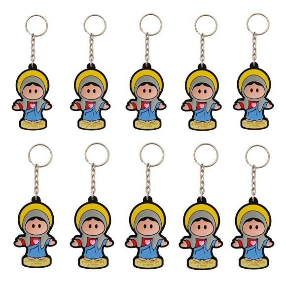 CH50001P10 - Chaveiro Imaculado Coração de Maria Emborrachado c/ 10un. - 11x3cm