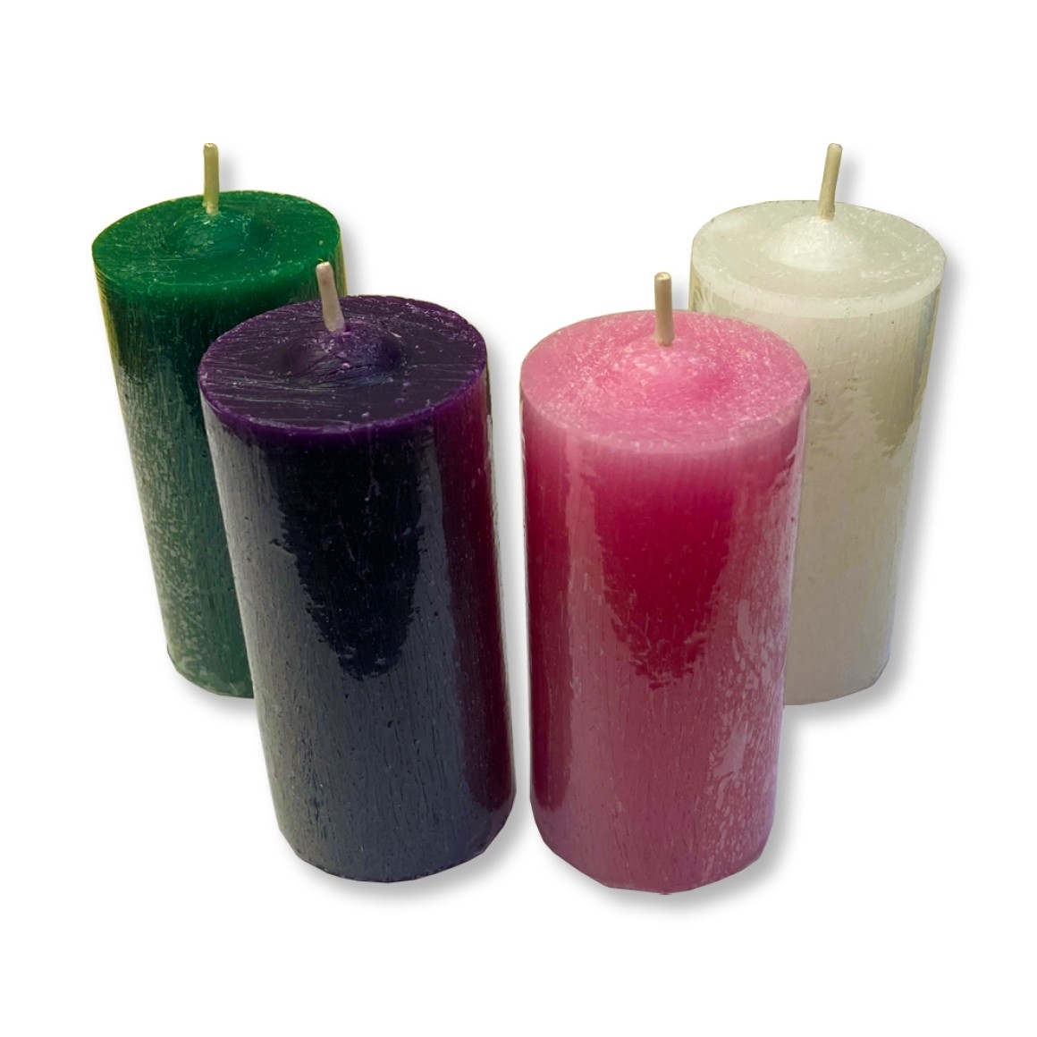 Velas (Branca, Rosa, Roxa e Verde) 8x3,5cm