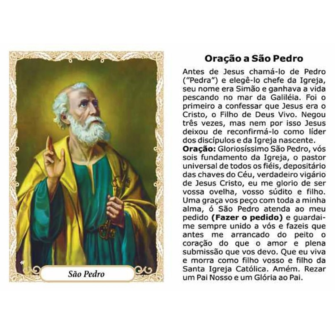 *Oração São Pedro c/ 100un. - 6x4cm.