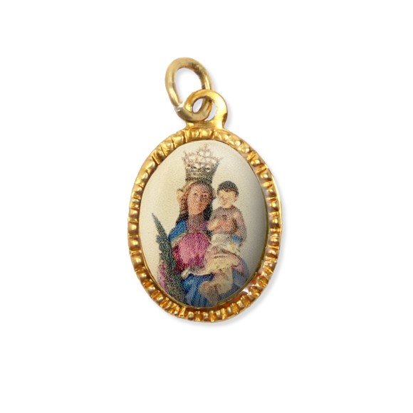 2. MD103118P10 - Medalha de Alumínio Oval Dourada c/ 10un. N. Sra. dos Prazeres - 2x1,3cm